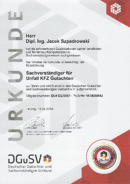 Mitglied DGSV ( Deutscher Gutachter und Sachverständigen Verband e.V. )